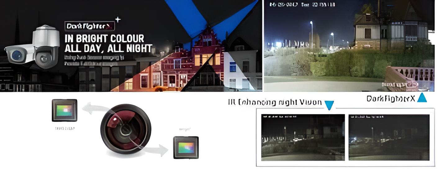 En 2013, Hikvision a lancé des caméras dotées de la technologie DarkFighter, avec un capteur plus grand et une ouverture plus grande que jamais. Désormais dotées du premier design à double capteur, les caméras avec la technologie DarkFighterX permettent une luminosité et des couleurs vives inégalées, ainsi que des images étonnamment nettes et claires en très faible lumière.